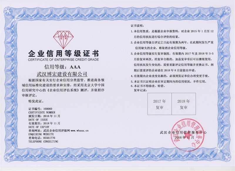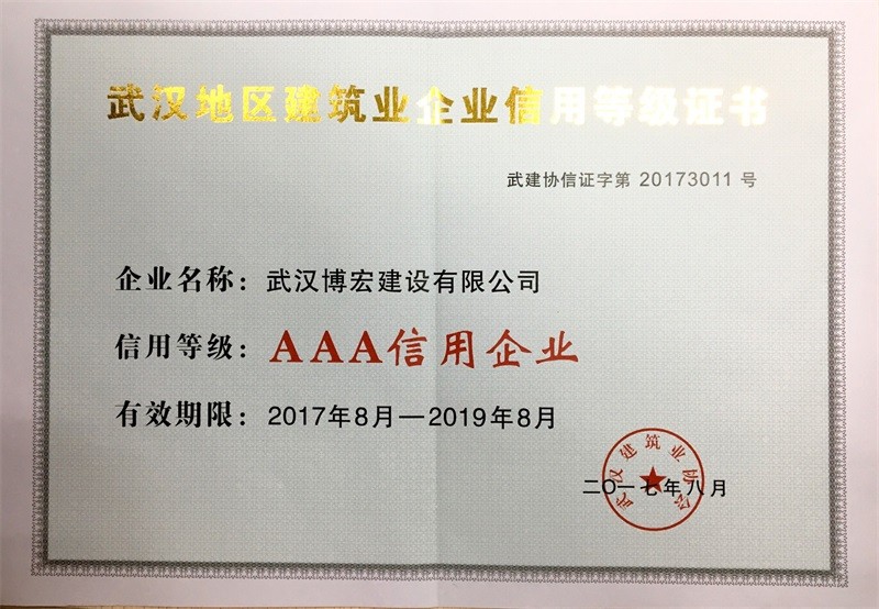 武漢地區(qū)建筑業(yè)企業(yè)信用等級(jí)證書2017-2019年度