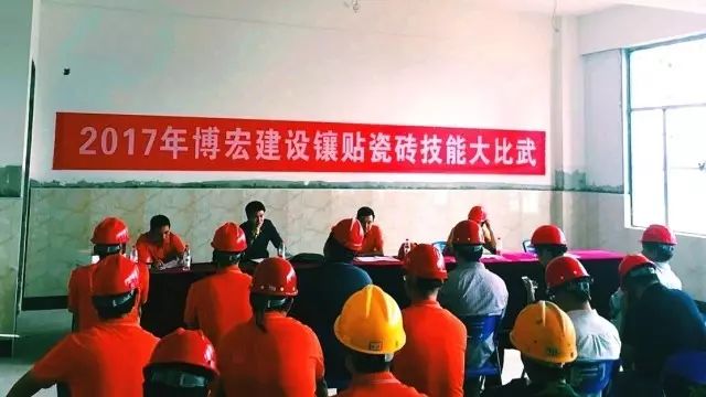 為大力弘揚工匠精神,提升操作工人技能水平,以賽促學,學以致用,在公司形成良好的學習氛圍,9月30日,博宏建設(shè)瓷磚鑲貼操作技能比武大賽在四新中學項目隆重上演。