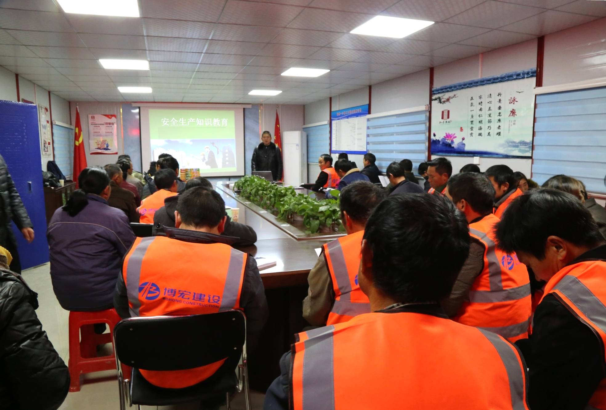 1211日晚6點,正值冬日嚴(yán)寒時段,武漢市建委、漢陽區(qū)建管站新春“三送”活動走進武漢博宏建設(shè)有限公司國博一小項目工地,為一線農(nóng)民工兄弟送溫暖、送文化、送法律,漢陽區(qū)建管站站長李宏、集團公司副總經(jīng)理邢榮斌出席此次活動,項目部及民工兄弟約50余人參與其中。