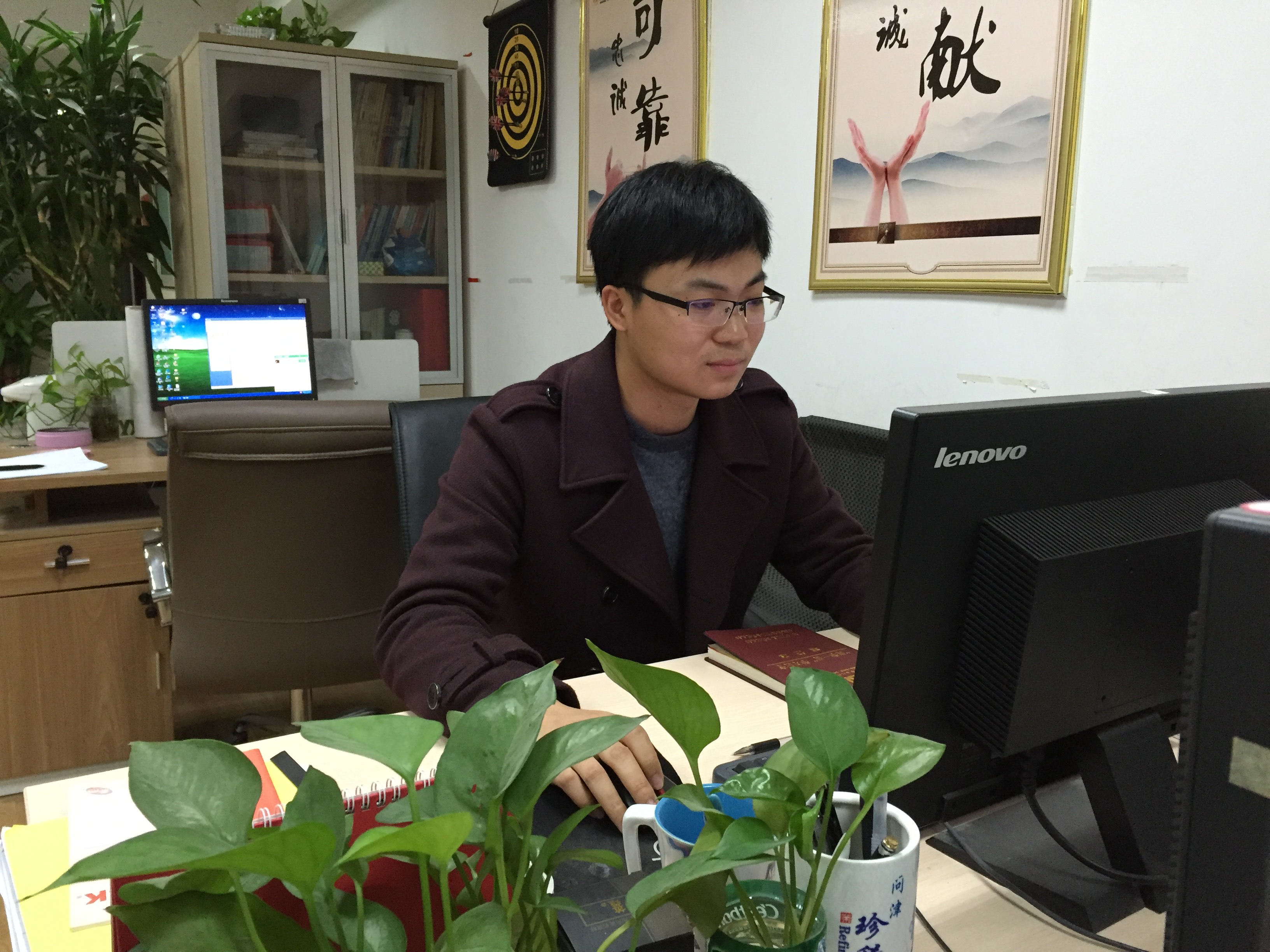 一個(gè)瘦高的90后小伙子,初見時(shí),他正忙于工作,在電腦桌前敲打著什么,正擔(dān)心會(huì)打擾他時(shí),他卻已經(jīng)熱情地招呼著我們坐下,當(dāng)?shù)弥覀兿胍稍L他時(shí),他顯得既有點(diǎn)靦腆,又有點(diǎn)驚喜,他就是今天我們的主人公——周昌文。