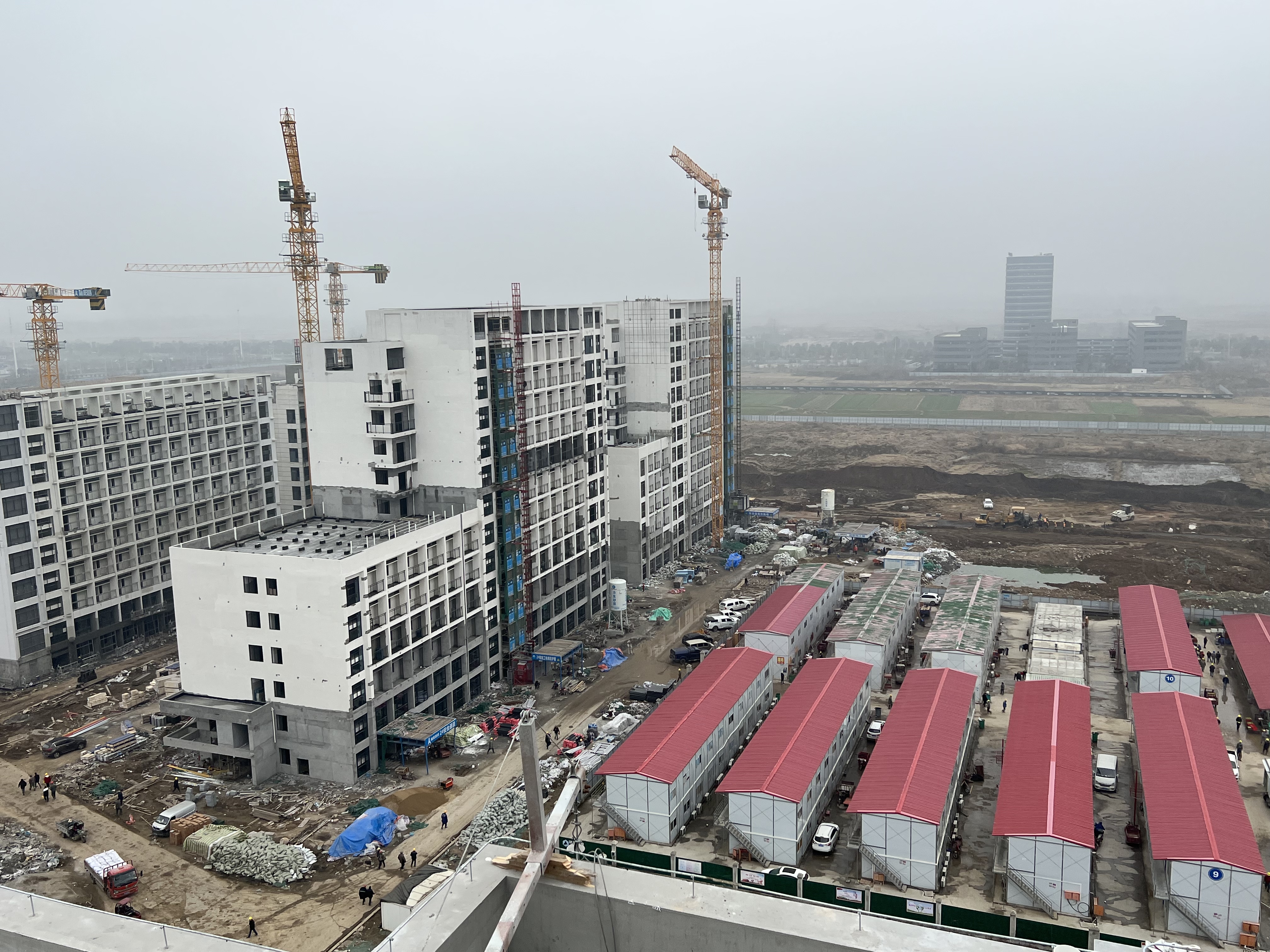 項(xiàng)目部遵循“緊前不緊后”的原則,春節(jié)前,項(xiàng)目部提前做了好春節(jié)期間不停工的相關(guān)部署:確定春節(jié)期間施工內(nèi)容和施工人員;提前將春節(jié)期間施工的保溫地坪材料、屋面磚、黃沙、水泥等材料運(yùn)送進(jìn)場(chǎng);提前聯(lián)系挖機(jī)、鏟車以及塔吊等,施工電梯不停工;同時(shí),確保春節(jié)期間項(xiàng)目餐廳正常供餐,并提高工人用餐標(biāo)準(zhǔn),水電工常駐工地,及時(shí)處理斷水?dāng)嚯姷奶厥馇闆r,確保項(xiàng)目團(tuán)隊(duì)正常生活不受影響。春節(jié)期間,各班組現(xiàn)場(chǎng)施工人員合計(jì)228人、項(xiàng)目部管理人員13人,進(jìn)行現(xiàn)場(chǎng)水電安裝施工、室內(nèi)抹灰、刮膩?zhàn)拥裙ば虻氖┕?。自年前?xiàng)目中標(biāo)開始,“起步即沖刺、開工即決戰(zhàn)”的新年奮進(jìn)號(hào)角在項(xiàng)目現(xiàn)場(chǎng)就已經(jīng)吹響。公司第一時(shí)間整合資源,抽調(diào)公司精英骨干及多個(gè)項(xiàng)目管理團(tuán)隊(duì),組成“幫幫團(tuán)”,集中人力和物力進(jìn)行支援。