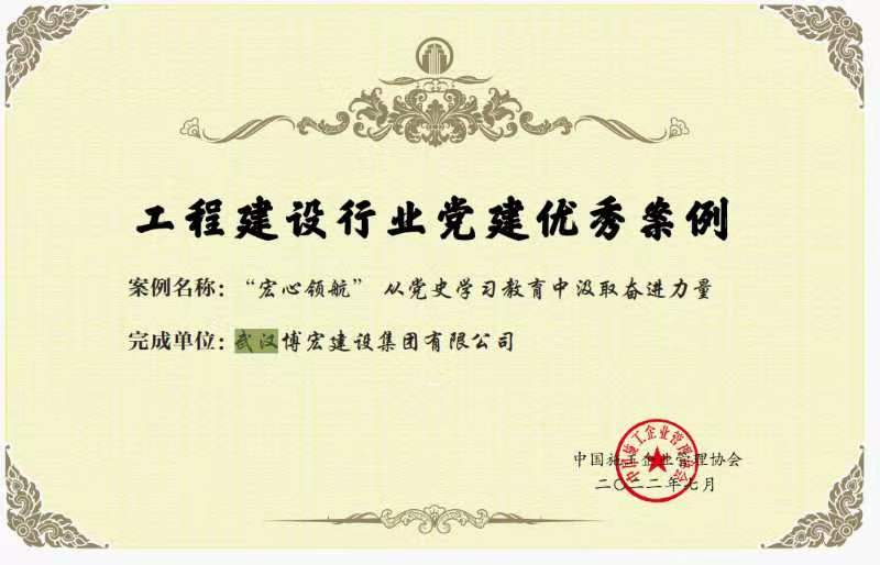 近日,中國施工企業(yè)管理協(xié)會發(fā)布文件,公布了工程建設(shè)企業(yè)黨建工作最佳案例、優(yōu)秀案例,由博宏建設(shè)集團申報的““宏心領(lǐng)航”,從黨史學(xué)習(xí)教育中汲取奮進(jìn)力量”獲優(yōu)秀案例榮譽。
