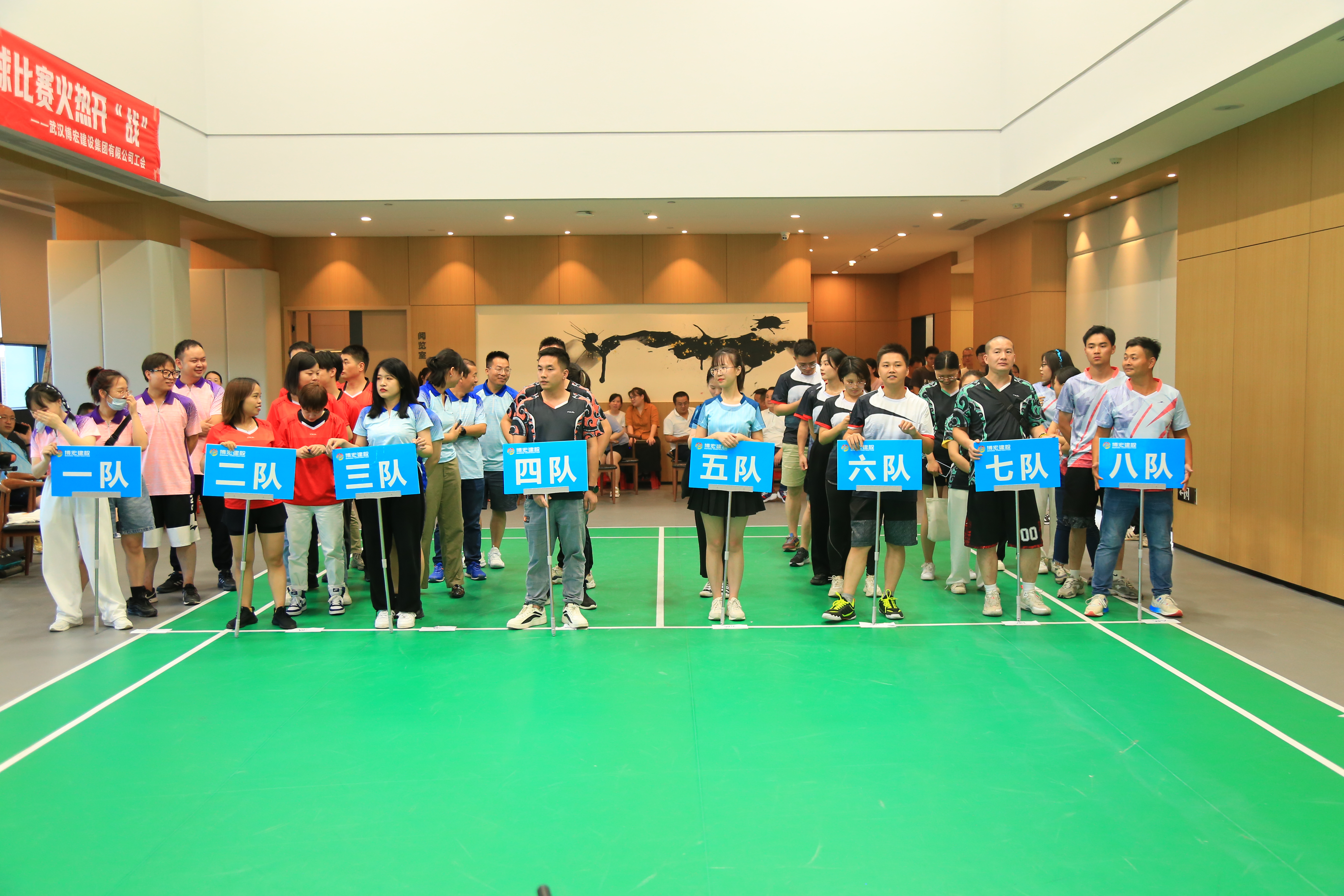 “暖心領(lǐng)航,‘羽’你同行”。為豐富職工業(yè)余生活,提升團(tuán)隊(duì)凝聚力和向心力,博宏建設(shè)集團(tuán)舉辦了第一屆“博宏杯”職工羽毛球賽,由51名職工組成的8支隊(duì)伍參加比賽。