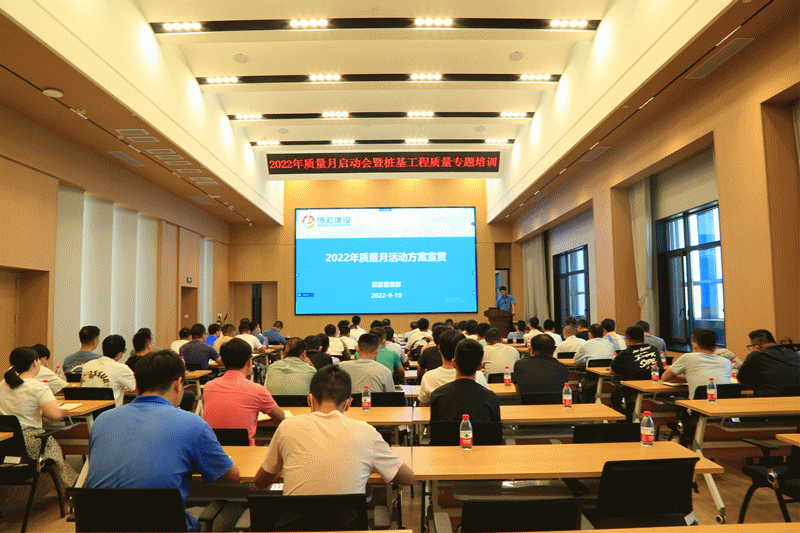 9月19日,博宏建設集團開展了2022年“質量月”啟動會暨樁基工程質量專題培訓,會上對“質量月”活動進行了動員和部署,對樁基工程質量進行了專項培訓。