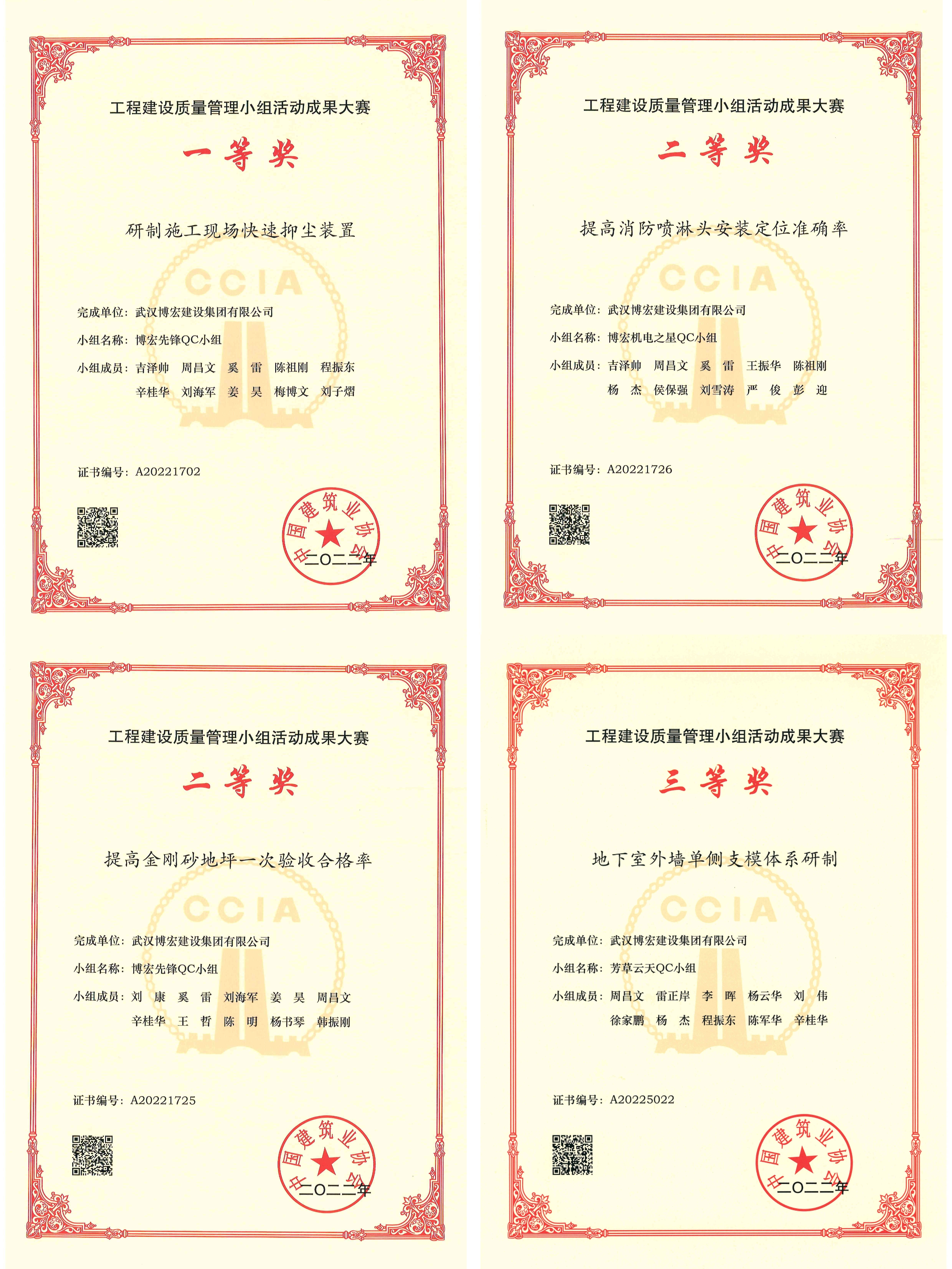 近日,由中國建筑業(yè)協(xié)會主辦的“2022年工程建設(shè)質(zhì)量管理小組活動成果大賽”獲獎名單公布,博宏建設(shè)集團榮獲4個獎項。