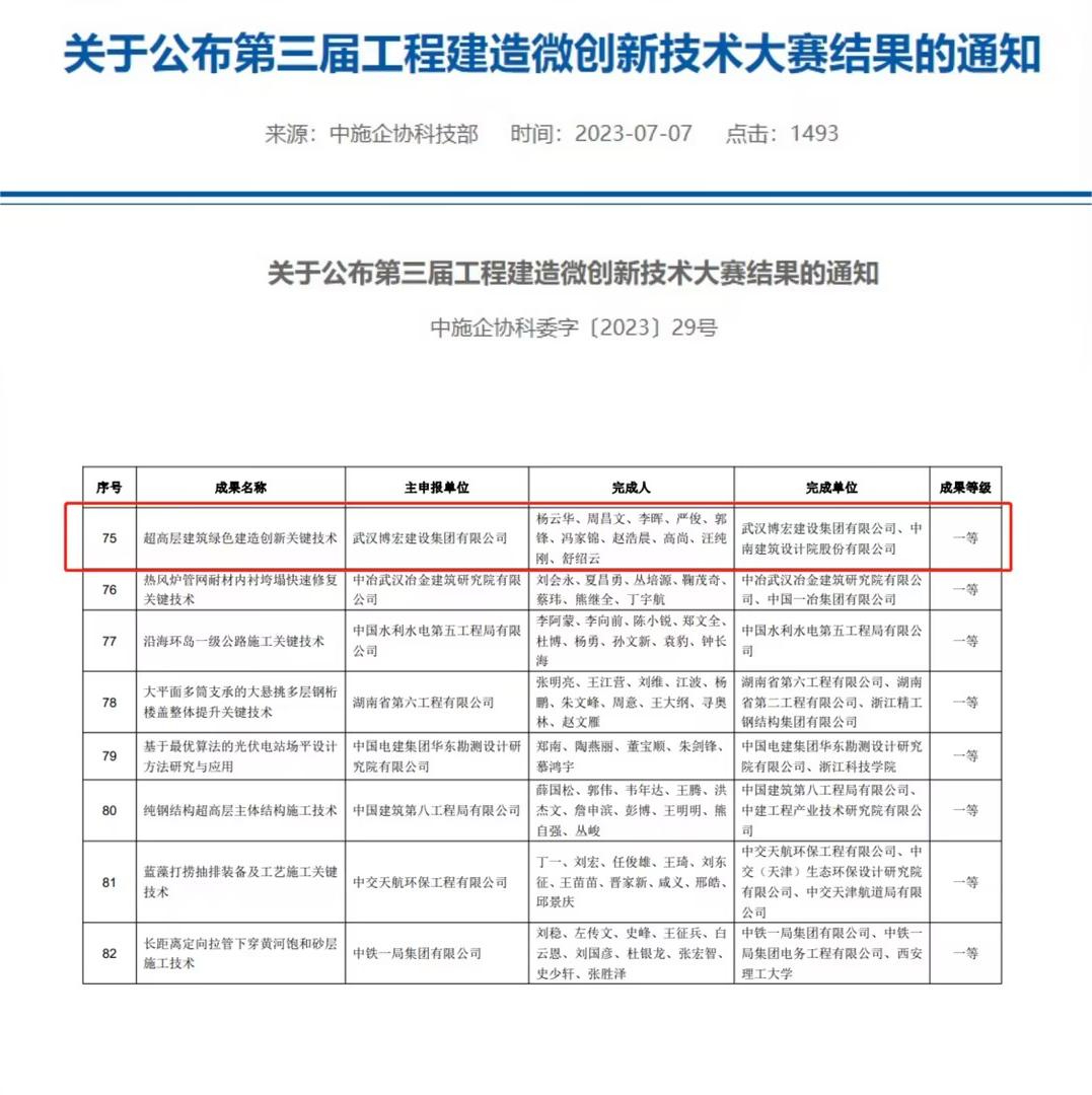 近日,中國施工企業(yè)管理協(xié)會公布第三屆工程建造微創(chuàng)新技術(shù)大賽獲獎結(jié)果。以中南科研設(shè)計中心建設(shè)項目為背景的“超高層建筑綠色建造創(chuàng)新關(guān)鍵技術(shù)”榮獲中施企協(xié)第三屆工程建造微創(chuàng)新技術(shù)大賽一等成果,這也是博宏建設(shè)集團首次獲得該類賽事一等獎