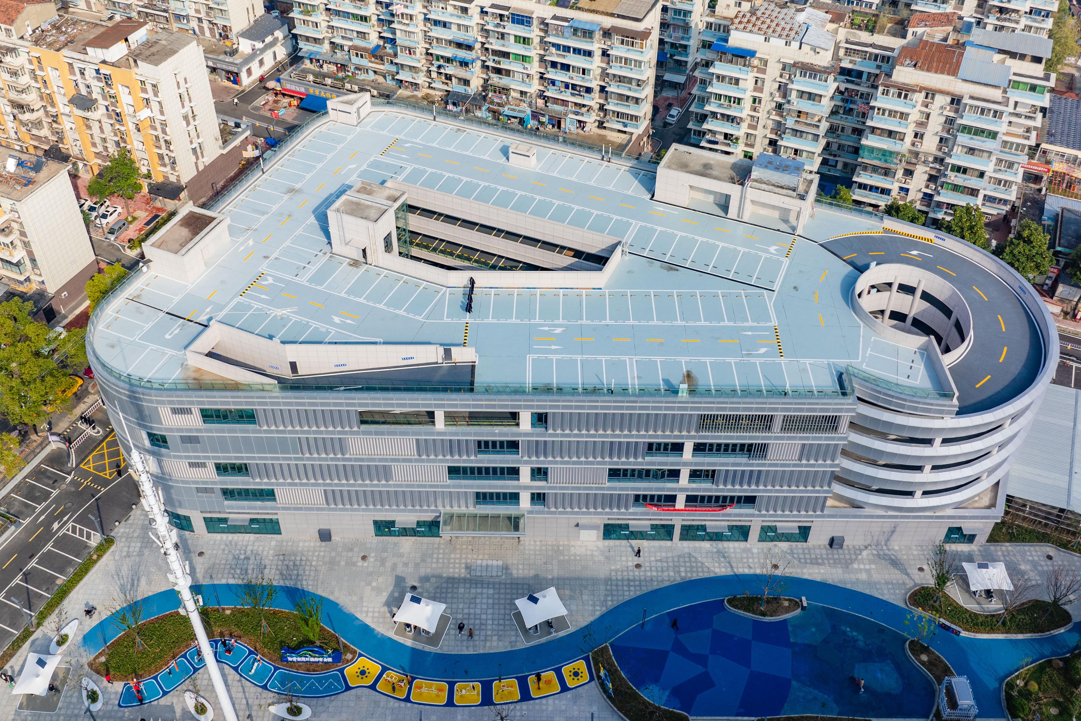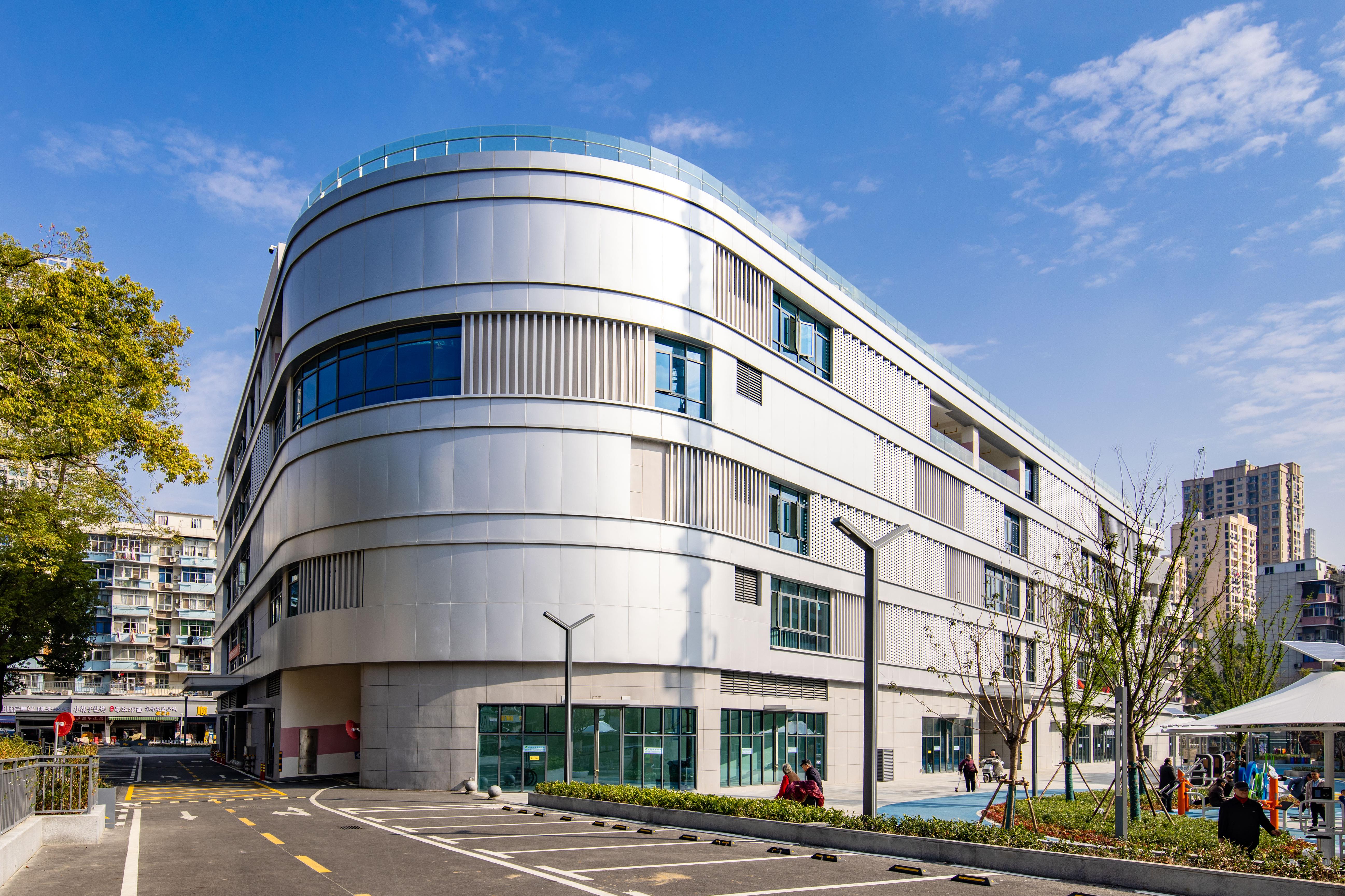 這棟別具一格的5層銀灰色綜合停車樓,不僅新增了450個停車位,還是居民的開放式“薈鄰中心”,樓外廣場設(shè)有“一老一少”休閑健身娛樂設(shè)施,籃球場、環(huán)形跑道、藍色沙池一應(yīng)俱全,樓內(nèi)1至2層設(shè)有1300平米的社區(qū)文化活動室、康養(yǎng)中心、應(yīng)急中心、圖書館等公共服務(wù)設(shè)施,后期還將圍繞社區(qū)打造全方位的便民生活圈。